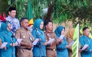 Deklarasi Kilau Emas dibacakan pada camat dan lurah se Kota Banjarbaru yang juga dirangkaikan penyerahan ribuan peralatan pengelolaan sampah dari Kementerian LH kepada Pemko Banjarbaru yang diterima Walikota Banjarbaru, Erna Lisa Halaby.